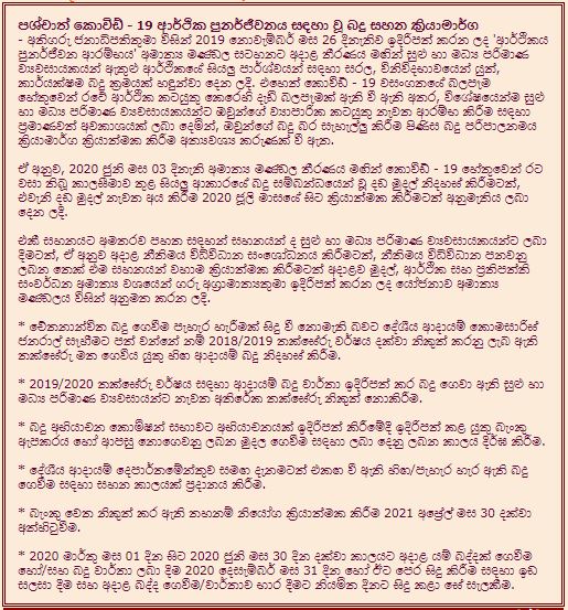The government has taken tax concessionary actions for the post COVID – 19 economic uplifting programme.